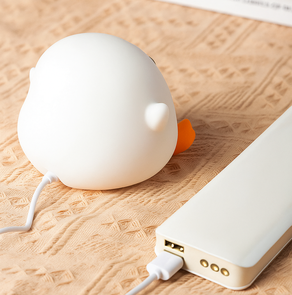 Freddie Davis This little duck is very cute! Once placed on the bedside table, a small press is enough to activate the 3 brightness levels or turn it off. Highly recommended.