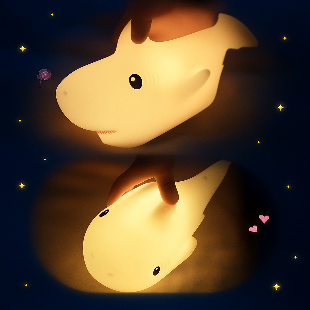The curious little nightlight in the sea! Made from soft, squishy silicone, Shelby glows with a gentle warmth that helps little ones drift off feeling safe and cozy. His rechargeable light and tap-to-dim feature make bedtime fun and fear-free. Perfect for kids who love ocean adventures — and parents who love peaceful nights.